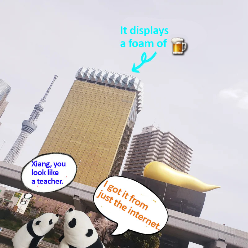 Ling! Those buildings are the headquarters of the Asahi beer!